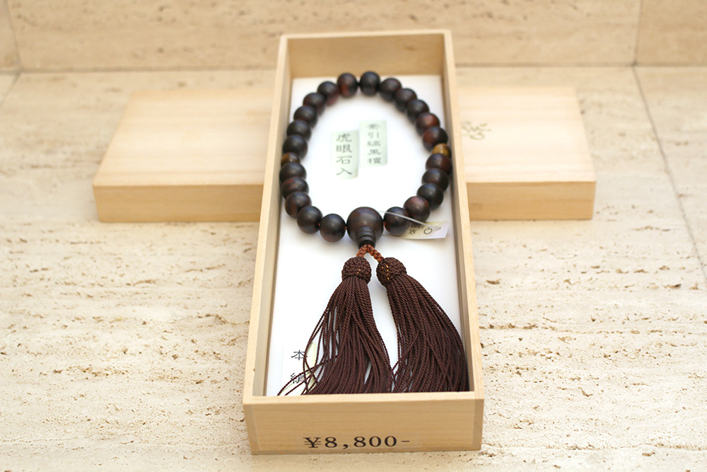 桐箱に入れてお届けします。 桐材は防虫・防湿効果がありますので天然材料を使用しているお数珠の収納に最適です。